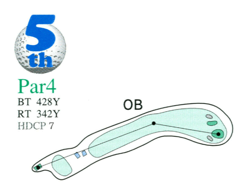 第2打地点からやや右ドッグレッグのホール。3オン1パット狙いが得策。